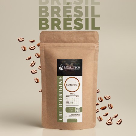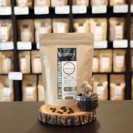 Découvrez notre Santominas en grain du Brésil, torréfié avec soin par nos experts.