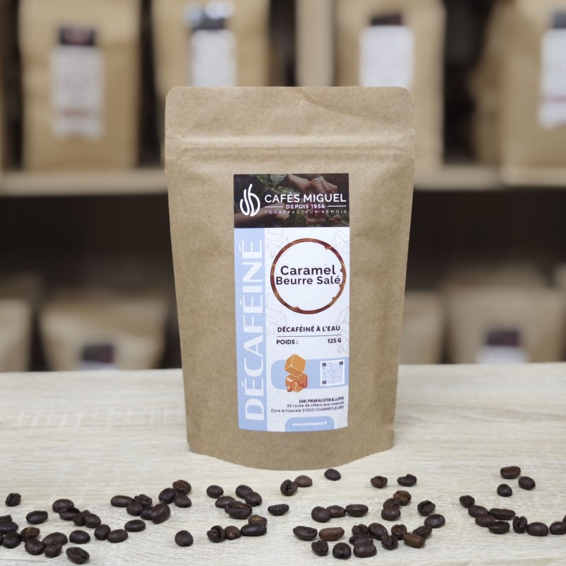 Dégustez votre café à toute heure avec notre café décaféiné aromatisé Caramel Beurre Salé, un délice pour les papilles !