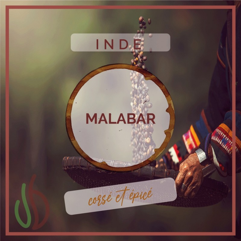 Café au corps intense, le Café Malabar d'inde présente en début de bouche des notes poivrées pour conclure sur une subtile alliance de notes abricotées et une légère amertume de chocolat noir.