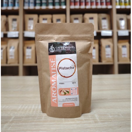 Il réunit 2 sachets de 125 g de café aromatisé à la pistache Cafés Miguel (en grain ou moulu).