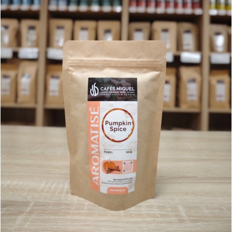 2 sachets de 125 g de café aromatisé Pumpkin Spice Cafés Miguel, disponibles en grain pour une mouture fraîche à la demande ou en moulu pour plus de praticité. Un café délicat aux arômes de cannelle, muscade et épices douces, idéal pour des instants réconfortants.